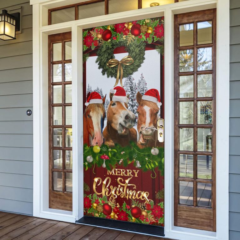 Merry Christmas Horses Front Door Cover Horses Lover Christmas Door Cover Decoration Cubebik